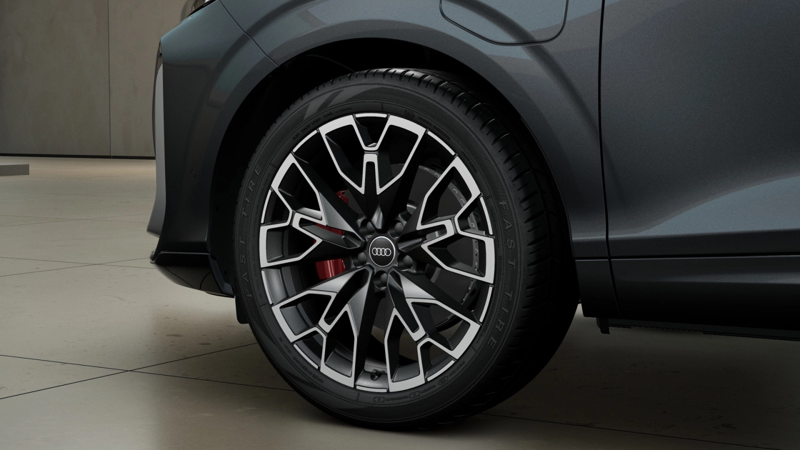 Cerchi Audi Sport, design a 5 razze a W, Nero Contrastante Opaco, torniti